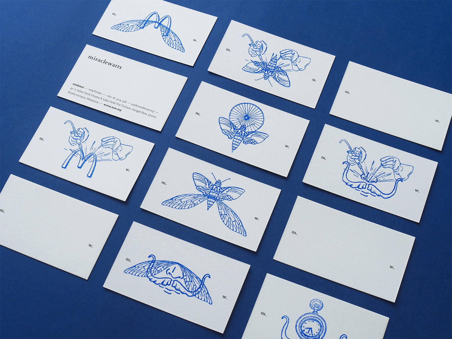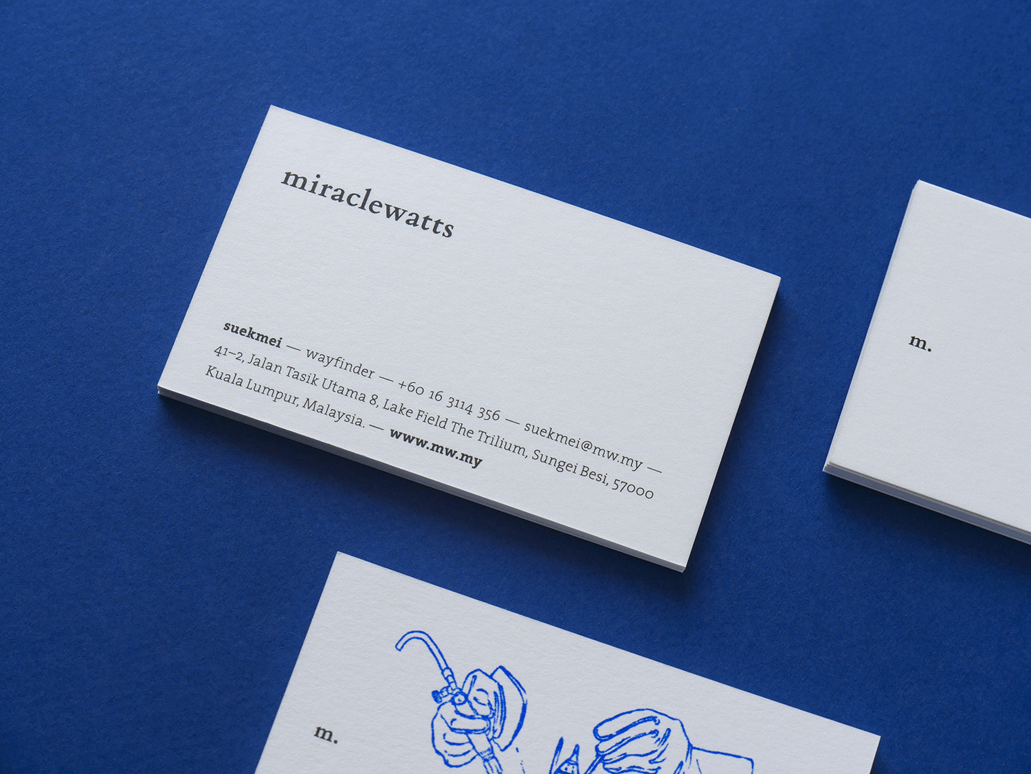 MiracleWatts is focusing on sign-making, wayfinding, interior design & brand consultancy. We created a series of illustration based the initials M & W, they were then stamped on the business card randomly to showcase the endless possibilities of MiracleWatts.